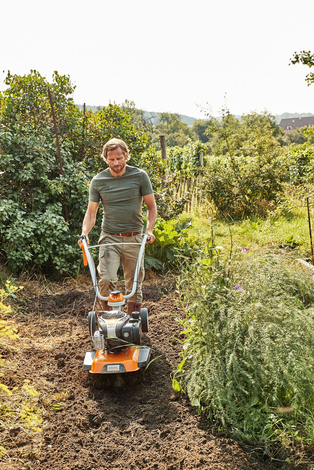 Commande d’accélérateur simple : toutes les motobineuses se pilotent à l’aide des deux poignées. La commande d’accélérateur se trouve à portée de main, afin que l’on puisse utiliser le régulateur de régime situé sur le guidon à l’aide du pouce pendant la conduite. Cela permet de doser de façon précise la puissance dont vous avez besoin lors du binage.